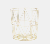 Стильний декоративний кошик золотистого кольору з витонченим геометричним дизайном.